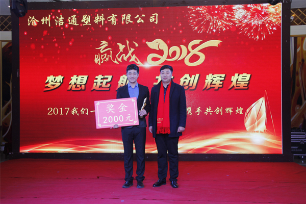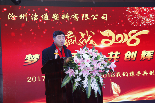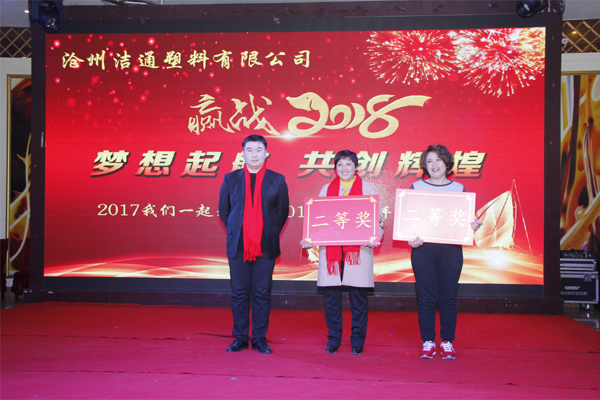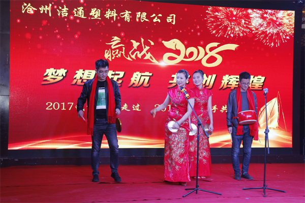 冬去春回又一載,似水流年旺年來。2018年2月12日下午,滄州潔通塑料有限公司2017年年會在正達(dá)大西洋酒店隆重舉行。潔通公司全體員工歡聚一堂,在熱情、溫馨、歡樂的氣氛中回首2017年取得的成績,共同迎接2018年的到來。